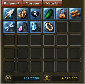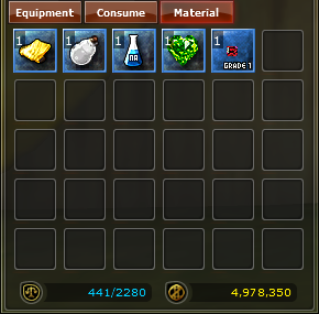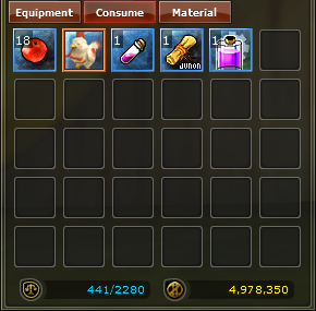 Medicine Food Fuel Skill Books Repair Tools Magic Items Quest Scrolls Drills Coupons Medals Mounts Mount Saddle Name Change Coupons Color Brushes Weapon Modifier |