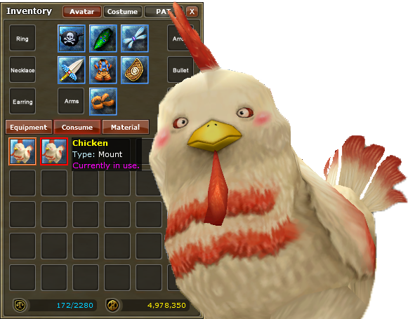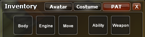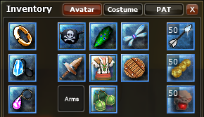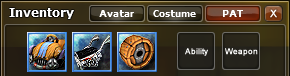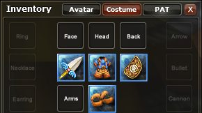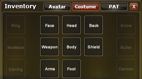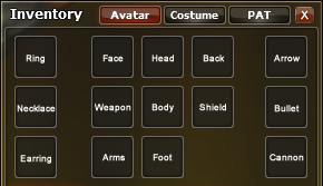 | Item Equipment | Items that can be worn in the Avatar window or a costume in the Costume window. |