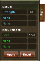 You can also use the filter button to search items by stats bonus or with stat requirements.
